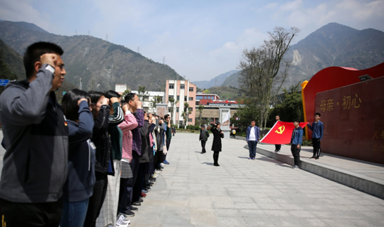 “我志愿加入中国共产党,拥护党的纲领,遵守党的章程……随时准备为党和人民牺牲一切,永不叛党。”在家国情怀宣誓广场,全体教师党员和学生党员在卢希芬副部长的带领下,举起右手,庄严宣誓,重温入党誓词。