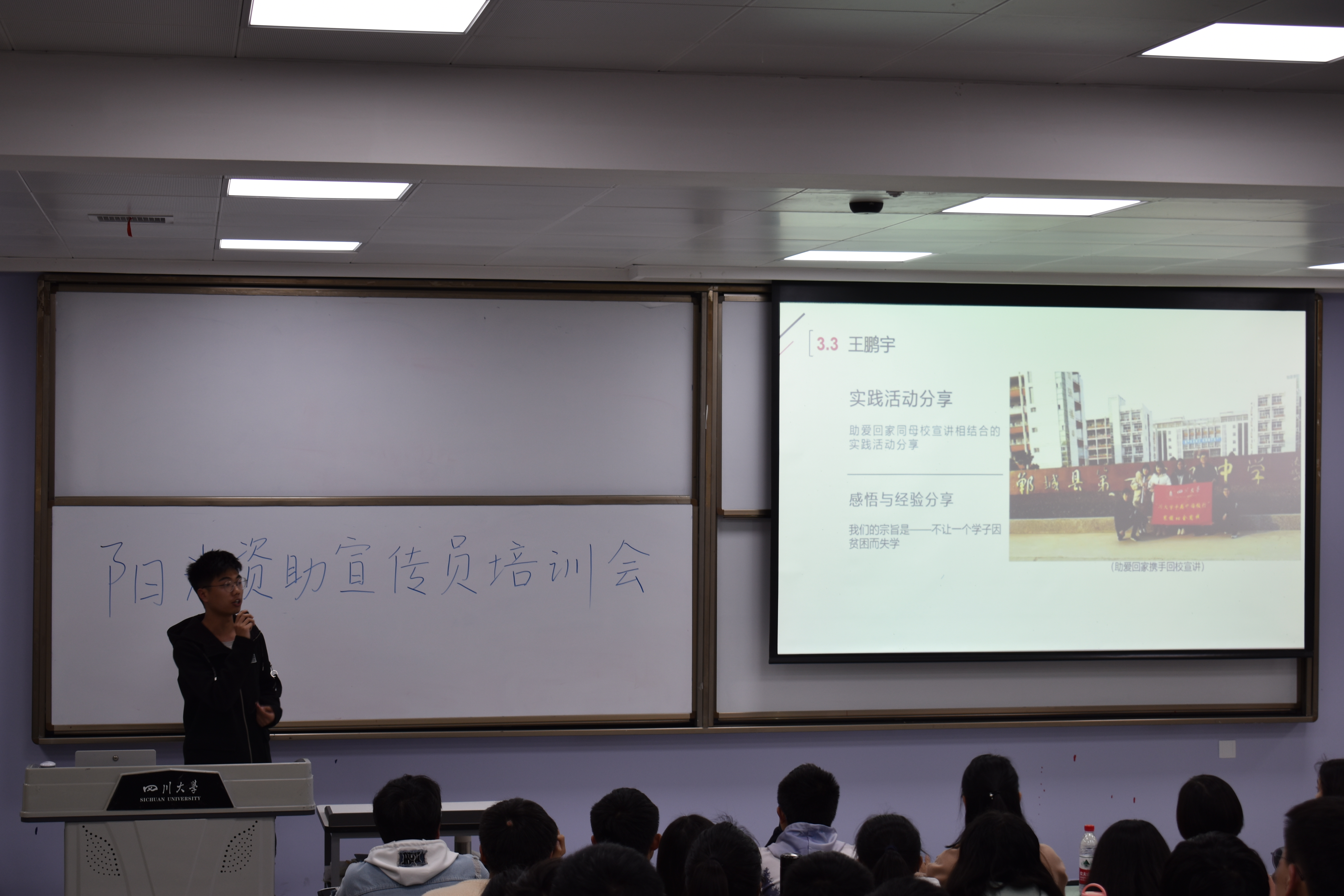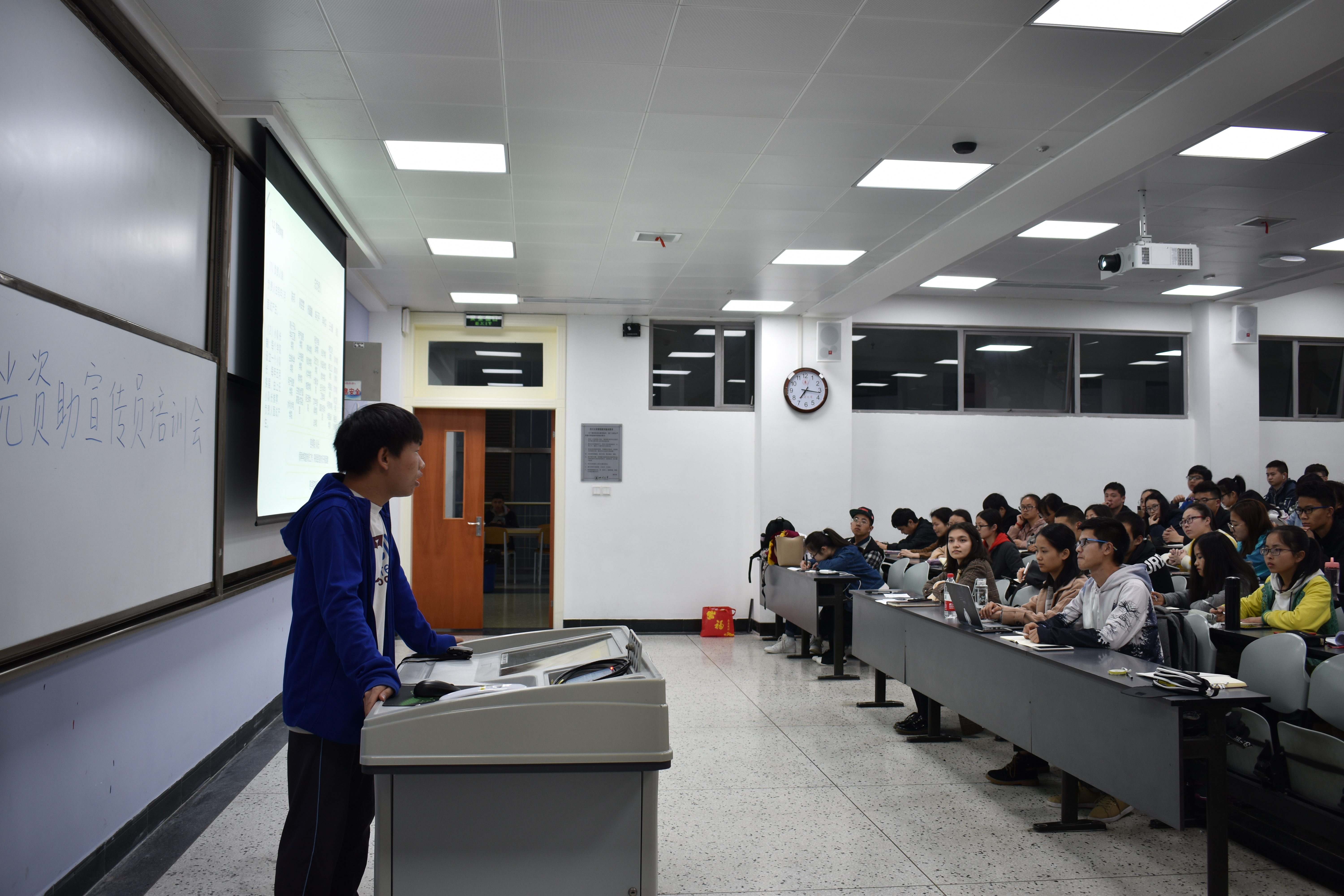 3月22日晚7点,春季学期阳光资助宣传员工作培训会在江安一教B205举行,学工部副部长卢希芬老师、资助中心迪丽达尔老师及全体在校阳光资助宣传员参加了本次培训会。