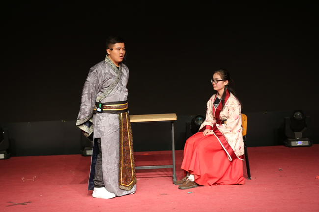 伴随晨钟暮鼓,《从前有座山》揭幕,青山上,无名庙,一老一少两和尚的聚散离合似乎让人看到了父辈和子辈的两难,小和尚的离去是终章还是开篇;《三块钱国币》围绕花瓶事件揭示当时社会恃强凌弱、无法无理的现象,表现了大学生的正义感和同情心;《雷雨》第一幕在鲁家的人物对话中垫下全剧压抑、沉闷的基调,第三幕在周朴园逼迫繁漪喝药的矛盾冲突中展现居中人物的悲剧人生……除此之外,还有《日出》《孔雀东南飞》《驴得水》《北京人》《暗恋桃花源之暗恋》《荆轲刺秦王》等,同学们把经典剧目中的老和尚、小和尚、周朴园、四凤、金子、荆轲等角色演绎得淋漓尽致,让观众时而紧张压抑,时而悲伤落泪,时而欢心愉悦。