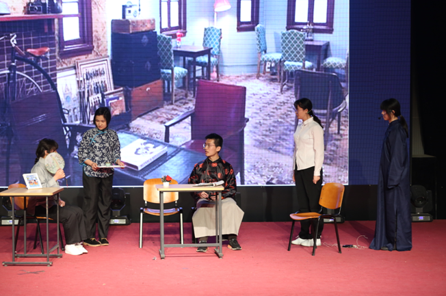 穿插于经典剧目的演绎中,同学们还表演了《76号》《大金牙》《误会》《76号》《不是我》等原创话剧,其中《新木偶奇遇记》取材于校园生活,讲述一个天真可爱确爱说谎话的小木偶经历不良校院贷后蜕变成长的故事,堪称话剧版“新生防骗指南”,让同学们在捧腹大笑中学会自我保护。