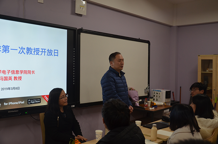 3月8日,yl7703永利集团电子信息学院2019年首次教授开放日活动,在江安校区六舍活动室顺利举行。冯国英院长、雷印杰副院长与同学们亲切交谈。