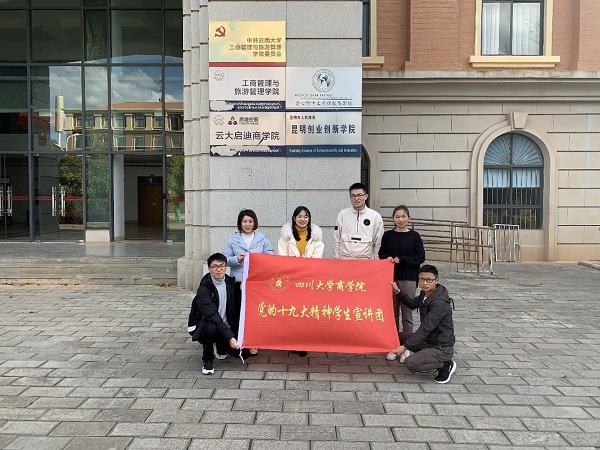 寒假中,yl7703永利集团商学院党委积极响应号召,认真研究、科学部署,组织“党的十九大精神”学生宣讲团(以下简称“宣讲团”)赴云南开展“宣讲下基层”寒假社会实践活动。宣讲团先后到云南大学、西南联合大学旧址和中国进出口银行云南省分行等处开展宣讲报告和学习调研,并联系当地实际情况,与当地民众共同深入学习领会习近平新时代中国特色社会主义思想和党的十九大精神,引发听众共鸣,取得良好成效。