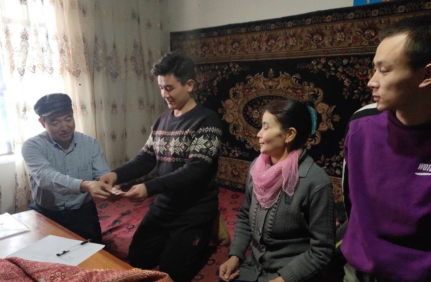 为继续写好2019年学生资助工作 “奋进之笔”,精准资助、育人育心,将党和国家的浓情厚爱深植学生心中,激发他们奋发图强、报效祖国, 2019年寒假,学工部资助中心老师迪力木拉提、迪丽达尔与李帝、李娜、阿布拉江、艾赛提等新疆内派老师深入喀什、阿克苏、库尔勒、轮台、伊犁、乌鲁木齐等地区,走进57名学生家庭,带去学校的深情和牵挂,传递党和国家的温暖。