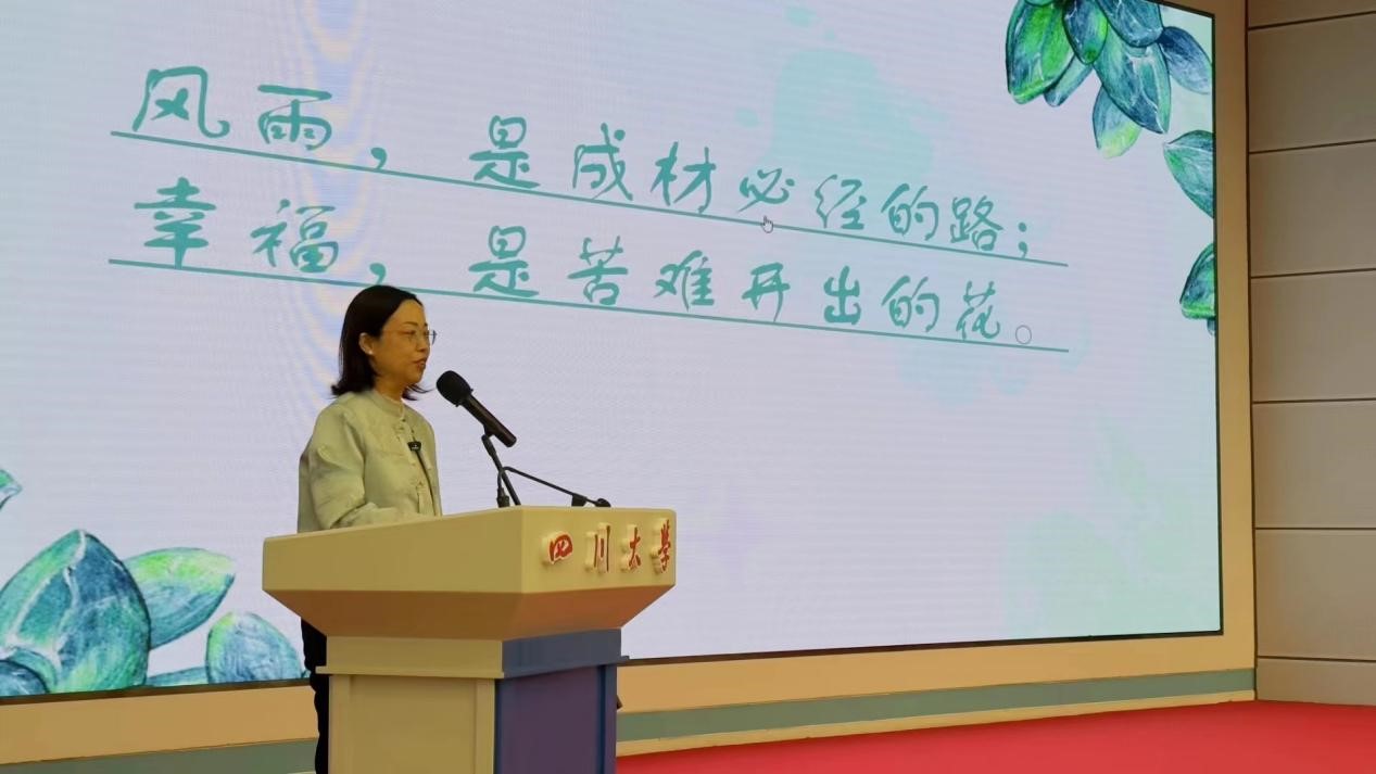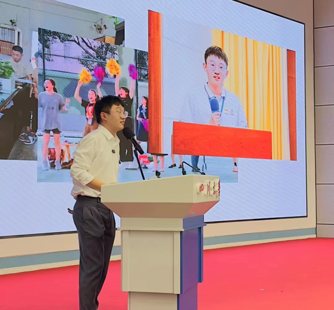 患有极重度双耳混合性听力障碍的2021届毕业生梁晏齐重返母校,作为受益者分享了他见证母校推动落地的融合教育体系和越来越完善的惠残政策。曾经以笔试面试第一名的成绩进入五粮液集团就职的他告诉学弟学妹们,“我比别人走了更远的路才来到这里”。他说,如果还没有被打倒、仍然有前进的路,就要全力以赴地追赶。精彩的演讲赢得了川大300多名师生的阵阵掌声。