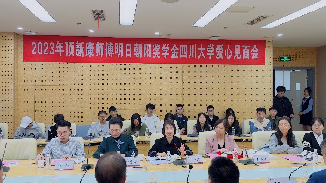 11月8日上午,顶新康师傅明日朝阳奖学金爱心见面会在江安校区多学科交叉研究创新大楼1020会议室举行。顶新公益基金会理事长滕鸿年一行、四川省台湾事务办公室联络处处长陈磊、以及我校相关单位工作负责人与今年的获奖学生一起参加了本次见面会。