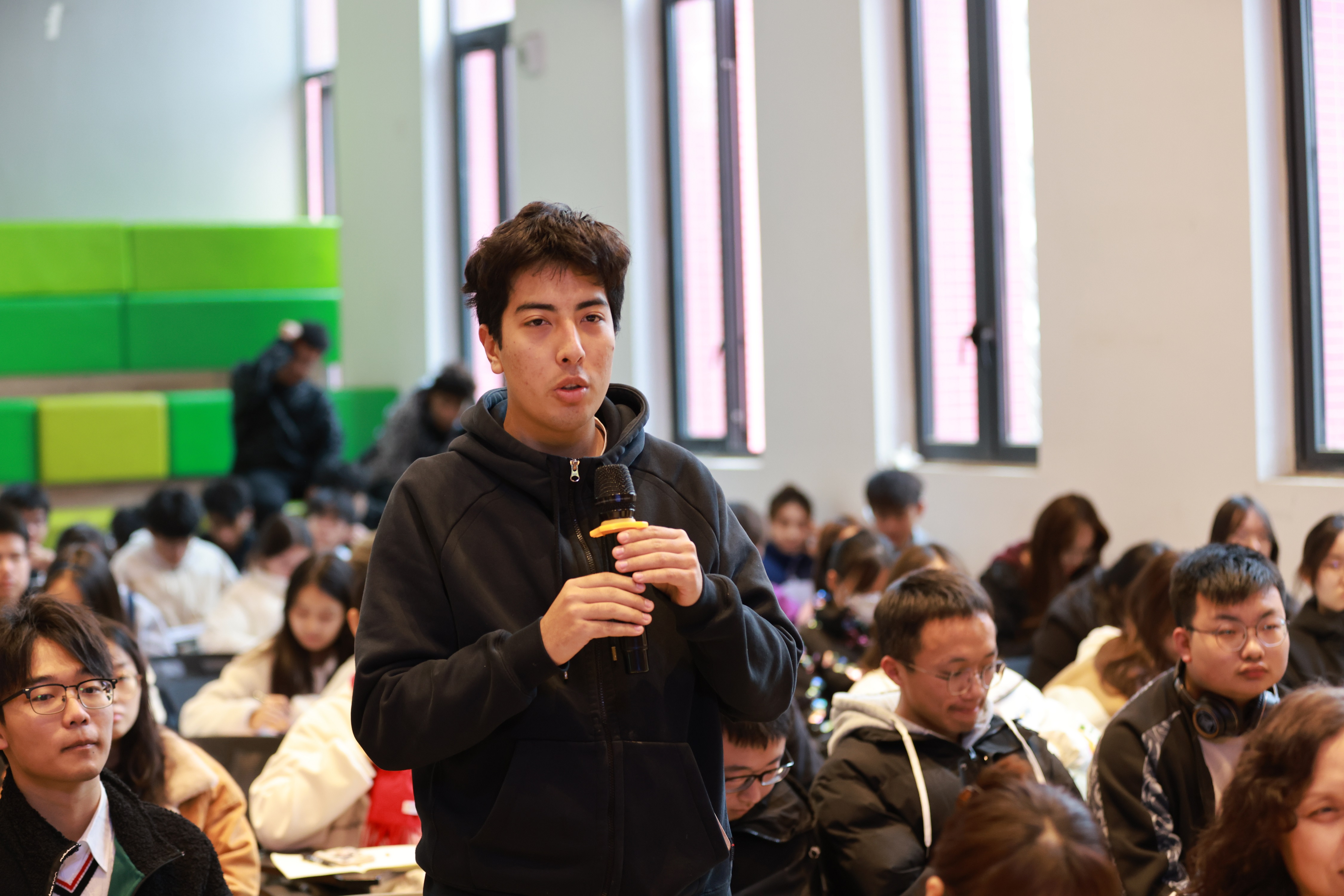 在互动问答环节,融乐坊法律咨询服务团队与同学们就日常生活中的法律问题进行了互动,同学们积极参与,在热烈气氛中学习法律知识。
