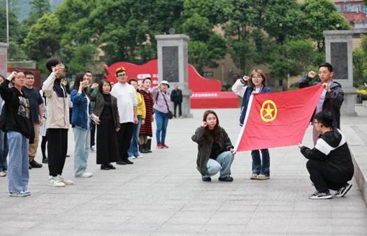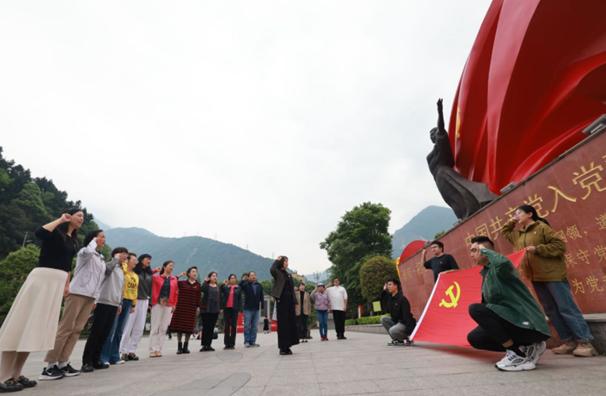 上午9点,在映秀宣誓广场,讲解员生动的讲述了地震中那些感人至深的抗震救灾故事,回顾了震后映秀在党和国家的关怀下、全国人民众志成城的援助支持下重建的历程。全体师生面对飘扬的五星红旗奏唱国歌,在“母亲·初心”纪念碑前重温了入团、入党誓词。在五星红旗下,全体师生紧握右拳高喊:“人民有信仰,民族有希望,国家有力量”。