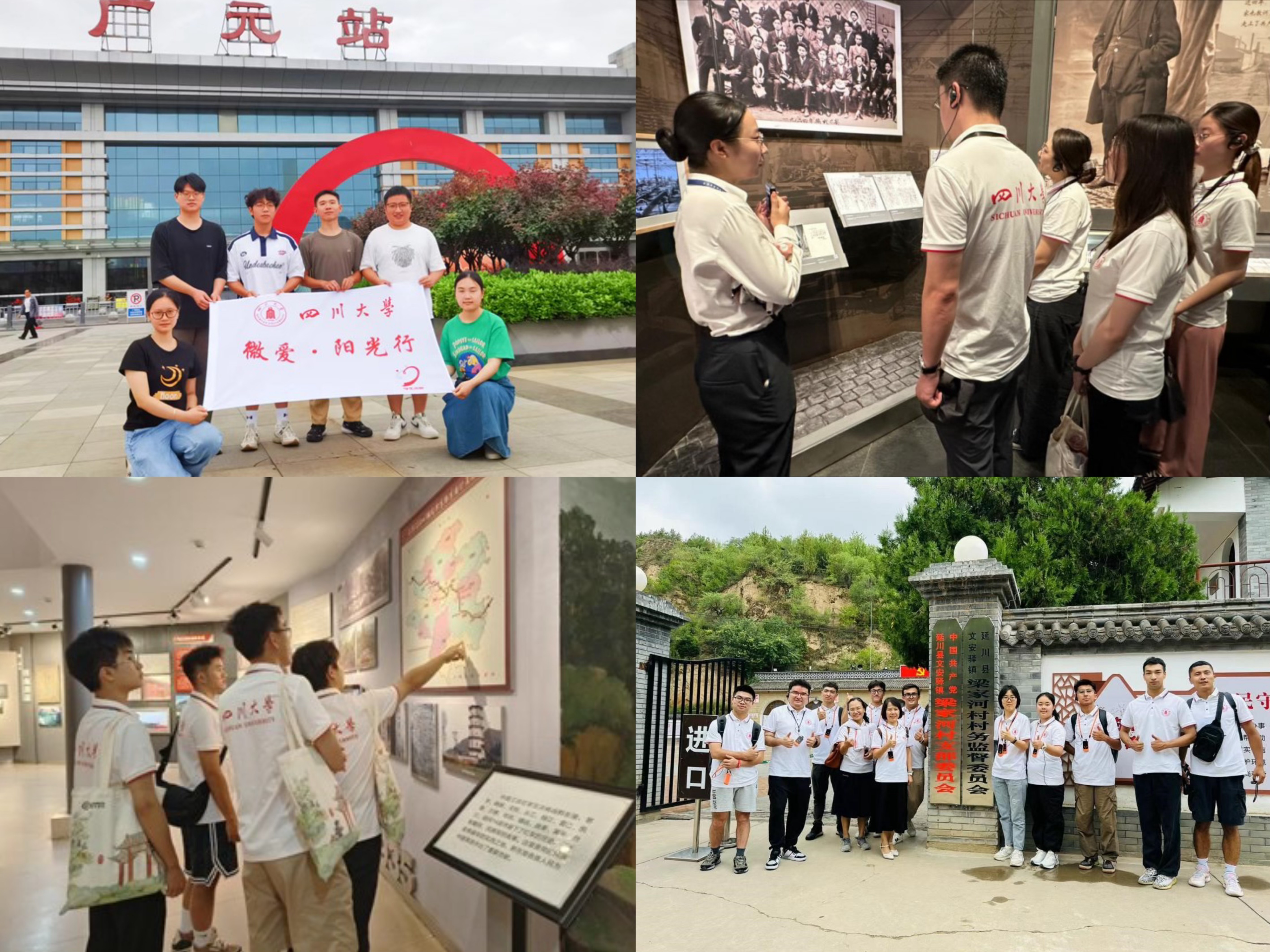 走访团队深入当地红色教育基地参观学习。在陕西延安,学工部带领团队前往梁家河知青旧址、延安革命纪念馆、杨家岭革命旧址、枣园革命旧址、中共中央西北局纪念馆参观学习。在贵州黔东南,网络安全学院带领团队参观了黔东南地区红色教育基地,包括黎平会议纪念馆、凯里党史陈列馆和中共贵州省工委旧址等。在四川广安,文学与新闻学院带领团队前往邓小平故居陈列馆进行参观学习,追寻伟人足迹,感受改革开放的伟大历程,纪念邓小平同志诞辰120周年。在新疆喀什,学工部带领同学们收集整理士兵们保卫国家、守护疆土的典型事迹,切身体会军民同舟共济、共同推动当地经济发展所取得的成果,宣传和弘扬边防将士无私奉献精神与家国情怀。