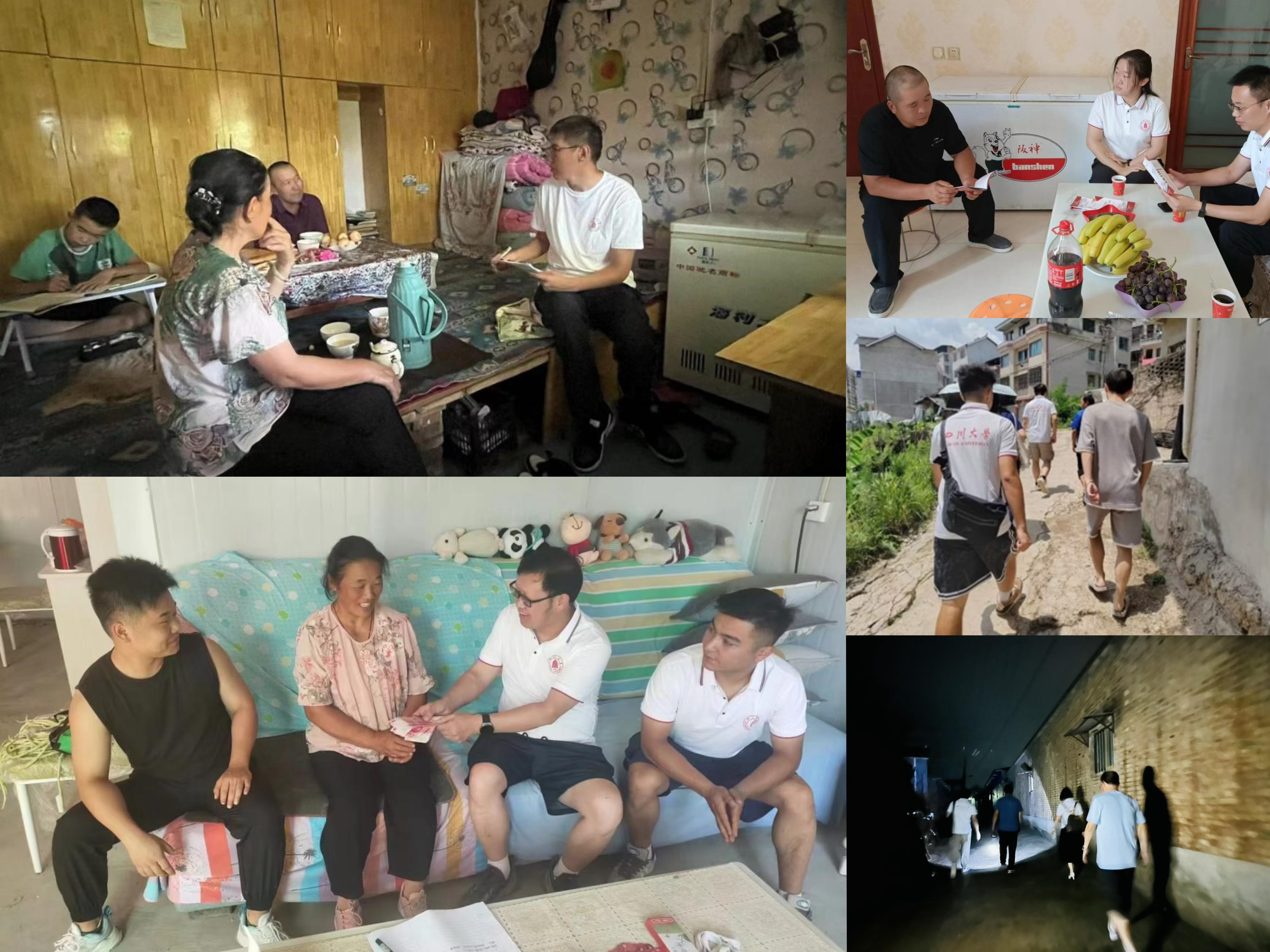 “家里老人身体如何?”“目前家里生活上有没有什么困难?”“现在国家政策好,孩子在学校你们尽管放心”……每到一个学生家庭,调研团队都会与受访学生及家人促膝交谈,细致了解学生家庭经济情况,交流学生在校学习生活,畅谈党和国家的惠民政策和学校的资助育人举措,为高年级学生提供学业深造和职业规划方面的建议、鼓励2024级新生提前做好生涯规划,在春风化雨中勉励学生笑对坎坷、拥抱未来。走访团队为55个重点关注易返贫和易致贫家庭、农村低保等特殊困难学生群体家庭送去慰问,发放慰问金37400元。文学与新闻学院、商学院、建筑与环境学院、马克思主义学院、华西公共卫生学院、网络空间安全学院等单位积极组织团队开展了走访实践活动。