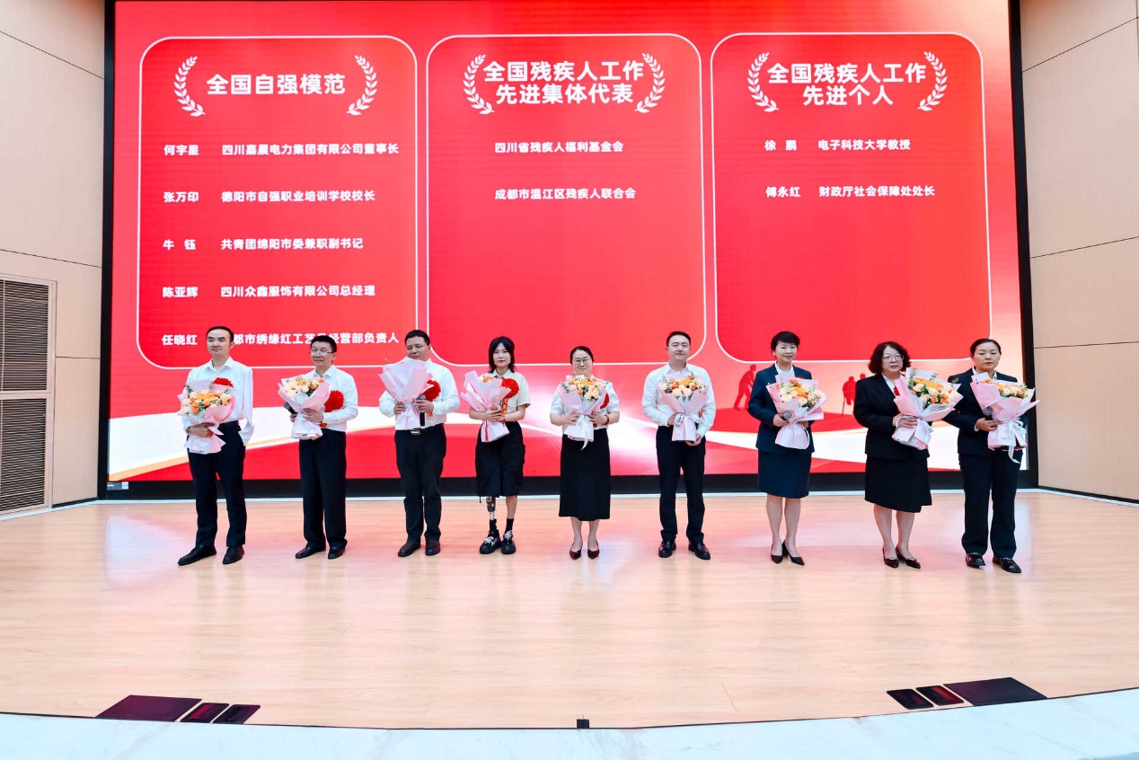 伴随着悠扬婉转的手风琴合奏《山楂树》《萱草花》,活动拉开帷幕。校党委常委王金友在致辞中对学校构建的“教育助残固本、人才助残铸魂、科技助残赋能”三维体系及我校自强学子的事迹进行介绍,寄语师生共绘“平等、参与、共享”的美好画卷。省残联副理事长黄卫德在致辞中以一组数据展现四川残疾人事业发展,致敬模范们用自强不息改写命运,用无私奉献诠释人间真情。