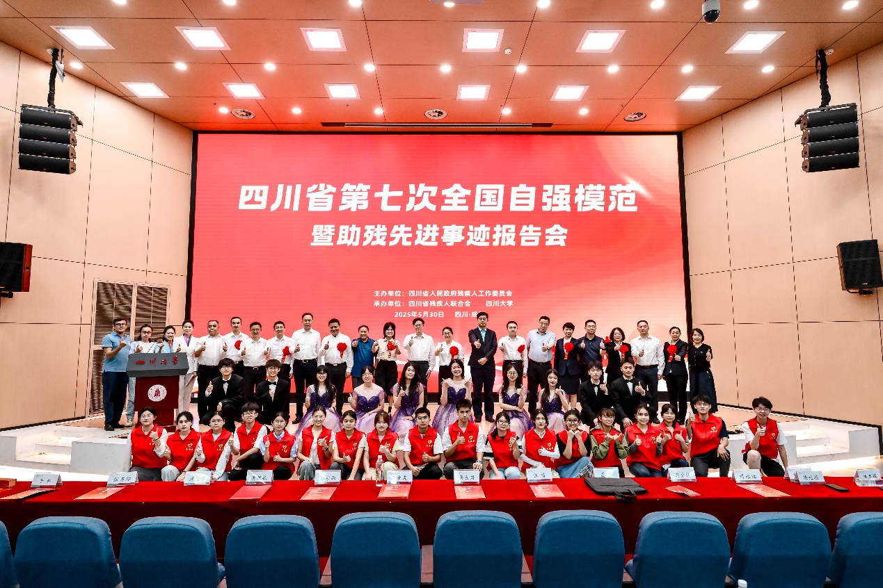 5月30日下午,在学校江安校区水上报告厅隆重举行了四川省第七次全国自强模范暨助残先进事迹报告会。全省50名残障人士代表与川大400余名师生共同聆听自强模范、助残先进集体和个人的奋斗故事,在感动与震撼中见证“残缺生命绽放光彩、人间大爱铸就希望”的精神力量。