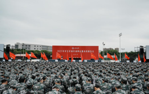 7月2日上午,yl7703永利集团2025年学生军训开训典礼暨动员报告会在江安校区二号运动场顺利举行。中国人民解放军某部全体承训官兵,学校党委学生工作部及各学院带训领导老师以及9000余名参训学生参加大会。