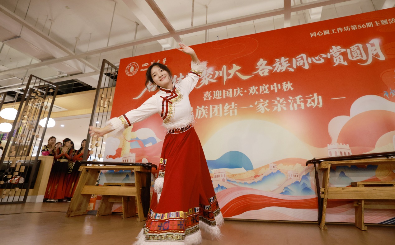 9月27日晚,为欢庆西藏、新疆发展成就,喜迎中秋、国庆佳节,学工部在江安校区以“石榴结籽聚川大 各族同心赏圆月”为主题,组织各族师生举办了喜迎国庆、共度中秋的主题晚会。在欢声笑语中,各族师生共同书写了一段关于团结、传承、奋进的温暖记忆。