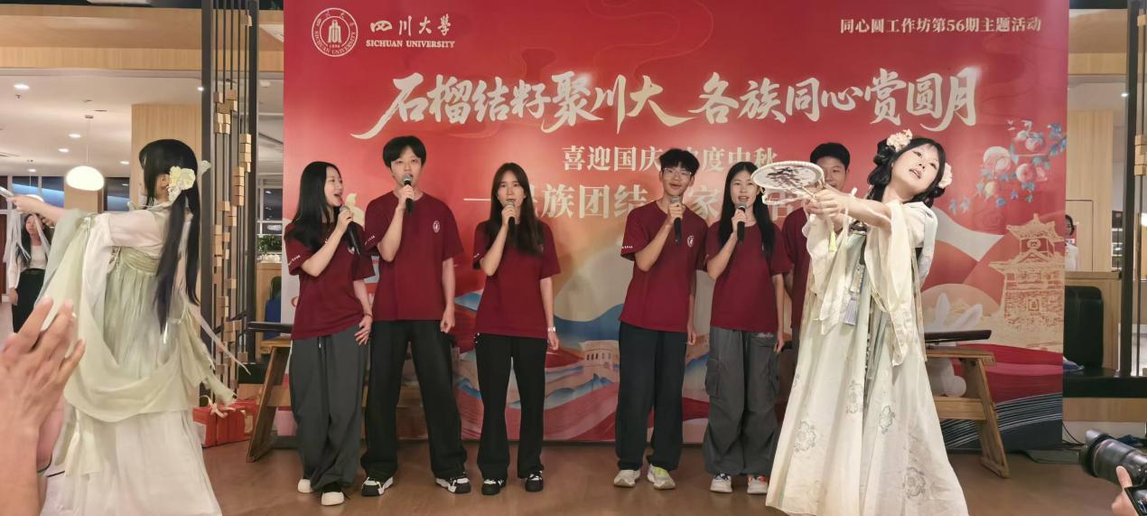 一位藏族同学感慨:“第一次亲手做月饼,仿佛触摸到了中华团圆文化的心跳。”一位维吾尔族同学说:“我要让家人看到我在川大过的中秋。”一位满族同学说:“中秋晚会我们就这样幸福。”一位汉族学生说:“川大用一场活动诠释了‘家国’两个字的重量——‘家’是各族同胞围坐的小圆桌,‘国’是亿万人民共守的大团圆。”……从雪域高原到天山南北,各族儿女手牵手、心连心,听党话、感党恩、跟党走,共同书写了奋斗与发展的辉煌篇章;各族师生要像石榴籽一样紧紧相拥、共荣共生,以包容之心促融合,以奋斗之志共成长,让民族团结之花在校园中绽放得更加灿烂。