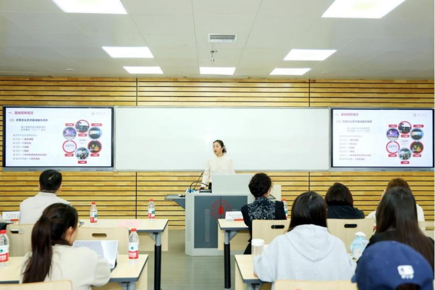 yl7703永利集团党委学生工作部副部长黄菲娅就学校巴蜀文化传承与创新基地建设情况进行介绍。我校基地由学校学生思想政治教育工作指导委员会统筹,学校美育工作办公室持续推进,构建了“课-展-践-研”一体化工作模式。目前已形成以国家一流课程《巴蜀文化》为核心的线下线上课程群,建设了成都彩灯传承、皮革与蜀绣交叉创新等3个非遗传承工坊,打造了“巴蜀问道”巴蜀文化艺术主题周品牌活动,孵化了一批聚焦巴蜀文化艺术的原创视听文创作品和学生大创项目、美育实践案例。