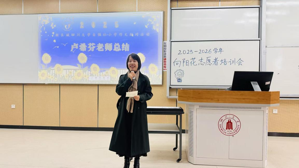 卢希芬在总结中,用07级川大学生与汶川中学结对的故事告诉同学们:“大学生能给予的精神关心,有时超过物质帮助。”她说,该项目兼具陪伴的坚守、读写的启蒙、共同的成长三重价值,希望同学们在志愿服务中践行责任与担当。