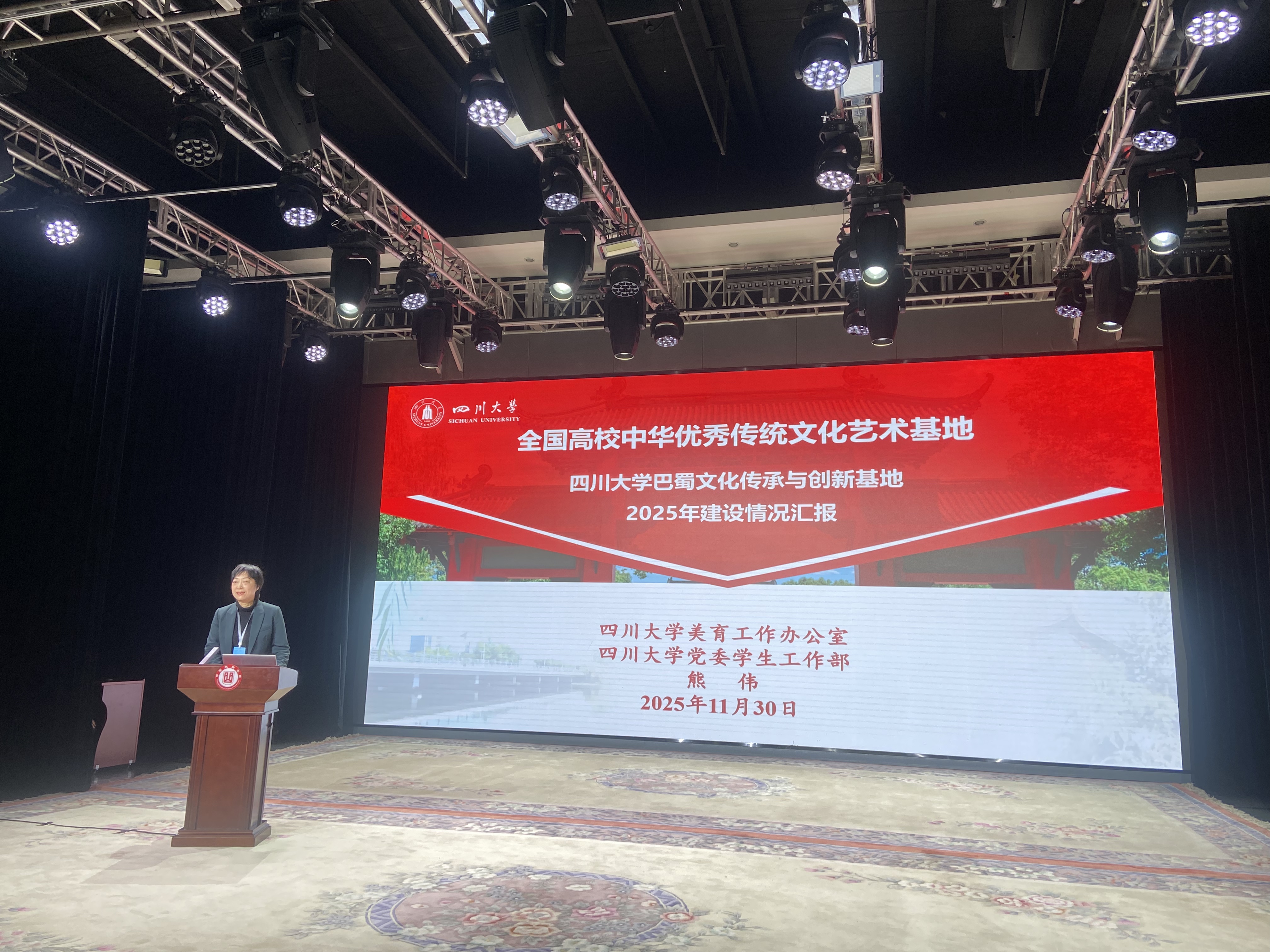 11月30日,教育部2025年全国中华优秀传统文化艺术传承基地交流活动在中国戏曲学院举行,来自全国106所高校传承基地的负责人齐聚一堂,围绕传统文化传承创新的实践路径展开深入交流。yl7703永利集团巴蜀文化传承与创新基地作为教育部本年度10个重点专项代表受邀参会,学工部部长熊伟面向全国同行汇报了基地建设的特色经验与阶段性成果。