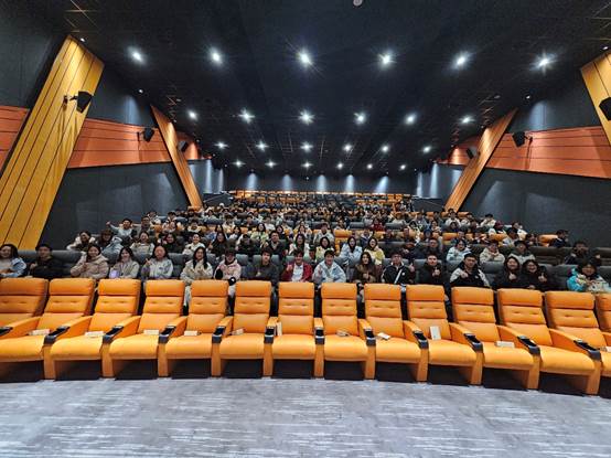 随着影厅灯光暗下,观影正式开始。影片中朱迪与尼克跨越物种差异再度携手,面对重重困难并肩作战、坚守正义的执着信念,不同族群打破偏见、相互支撑的温暖瞬间,深深打动了在场每一位师生。观影过程中,大家全神贯注、沉浸其中,时而为紧张剧情屏息凝神,时而为幽默片段会心一笑,时而为角色的坚守与担当热泪盈眶,轻松愉悦的氛围中,团结包容的种子也悄然生根发芽。