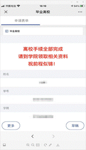 图一 毕业离校系统进入界面 图二 毕业离校系统完成界面