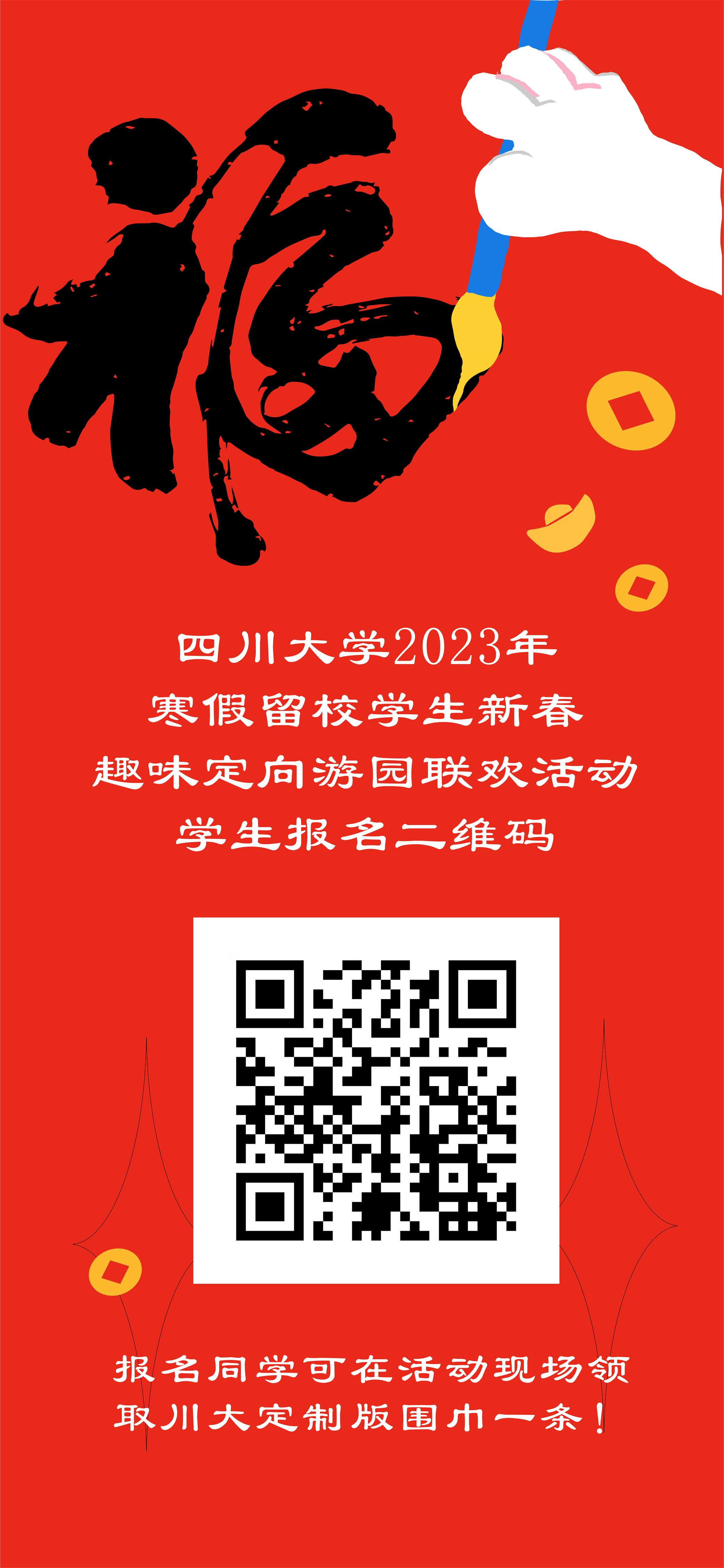 有意愿参与活动的同学请扫描下方二维码进行报名,报名时间为1月11日22:00-1月15日13:00,报名的同学可以在活动现场领取川大定制围巾一条。