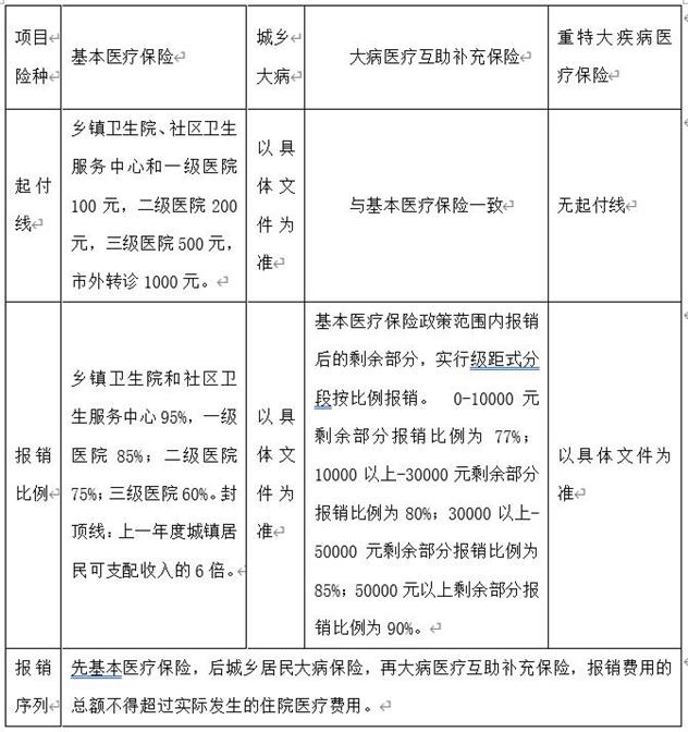 成都市城乡居民(大学生)医疗保险住院报销政策一览表(待遇标准仅供参考)