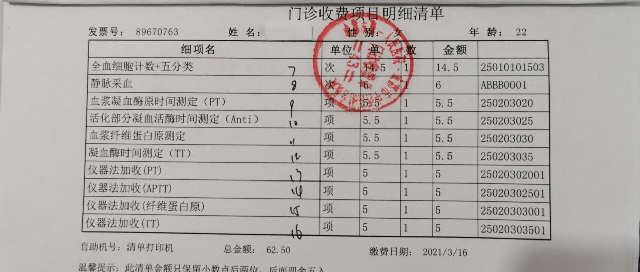 ⑨门诊病历(原件)。(请同学们提前前往就诊医院准备齐全您的发票细目中每一个治疗、检验、药品及诊疗项目的医保项目编码(详见附件样板展示),请务必将需报销的每张发票与相对应的门诊费用清单、门诊药品销售清单、检查报告单、化验报告单等对应整理,避免因报销资料或医保项目编码不全导致不能报销。)