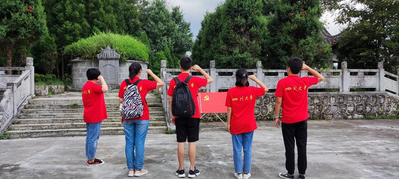 在本次走访活动中,化学学院“微爱·阳光行”暑期调研分队师生一行走访学习了毕节市大方县八堡爱国主义教育基地——八堡红军坟。在红军烈士墓前,团队师生们学习了新开村红军坟历史故事以及八堡红色文化介绍,在党旗下重温了入党誓词,表达了对红军烈士们的深深哀思和崇高敬意。今年是中国共产党建党一百周年,师生们要将红军精神和长征精神传承下去,为祖国的伟大复兴不懈奋斗!