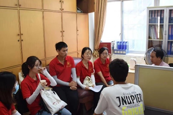 本次活动得到了学院领导的高度重视,于2021年7月22日召开出征仪式,学院党委蒋斌书记、朱敏副书记、研究生科陈宇老师、走访团成员以及党员代表出席会议。会议上蒋斌书记均强调了本次走访活动的重要性,并指出“走访活动也是我们在践行“不忘初心,牢记使命”,希望走访老师同学代表我院全体研究生赴江西赣州开展活动,在社会课堂中受教育、长才干、作贡献”;朱敏副书记强调团队意识,希望同学能团结互助,共同践行使命;陈宇老师从安全的角度提醒走访团时刻防护,防暑。走访前,带队老师组织团队讨论,分析走访家庭的具体位置,结合天气和地理位置等多种因素,规划走访路线,将6人走访团分为2个小队伍,相互合作,分工明确,制定了详细的走访方案。