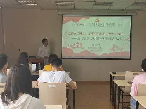 5月13日,学院举办了“讲述身边的党史故事”之“学科专业发展故事”专题党课。谢红强副院长作为主讲人,以“坚持立德树人、加强学科建设,推进专业转型”为题,为全院学生党支部成员进行授课。他介绍了在党的领导下我国水资源开发利用和水旱灾害斗争所取得的辉煌成就,同时指出了当代我国水利学科建设面临的全新挑战,以及水利学科领域人才需求转变。他还从解决工程建设难题引申开去,谈到了解决水安全中的水资源、水环境、水生态、水灾害、水管理、水经济、水工程等系列问题,全面阐释了当代水利人才所应具备的学科交叉综合研究能力和国际化视野。