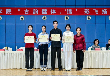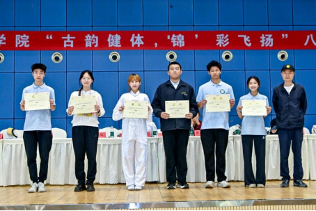 比赛现场,各班级按照抽签顺序依次进行表演。参赛学生以整齐划一的动作展现了八段锦的传统韵味——从“双手托天理三焦”到“左右开弓似射雕”,动作流畅自然,充分体现了传统养生文化与学生健康锻炼的有机结合。为保证比赛公平,活动采用评委打分与大众评审投票相结合的方式,最终评选出一等奖2个、二等奖4个、三等奖6个。