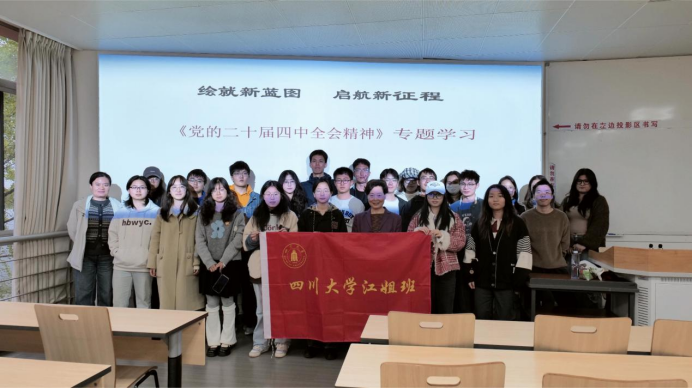 2025年10月31日下午,学校江姐班在江安校区第一教学楼A207联合开展党的二十届四中全会精神专题学习活动。活动特邀马克思主义学院陈文泽教授作专题授课,网络空间安全学院和水利水电学院江姐班、计算机学院和生物医学工程学院江姐争创班,以及百川青年学生宣讲团的同学参加此次理论学习。