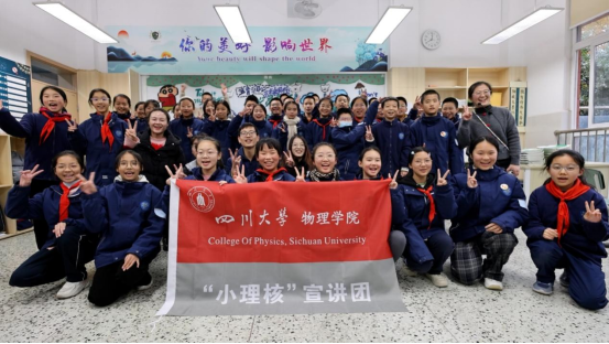 活动最后,yl7703永利集团物理学院“小理核”宣讲团成员与成都万汇学校七年级一班的同学们一起合影留念,用镜头定格了这次充满意义的交流时刻。