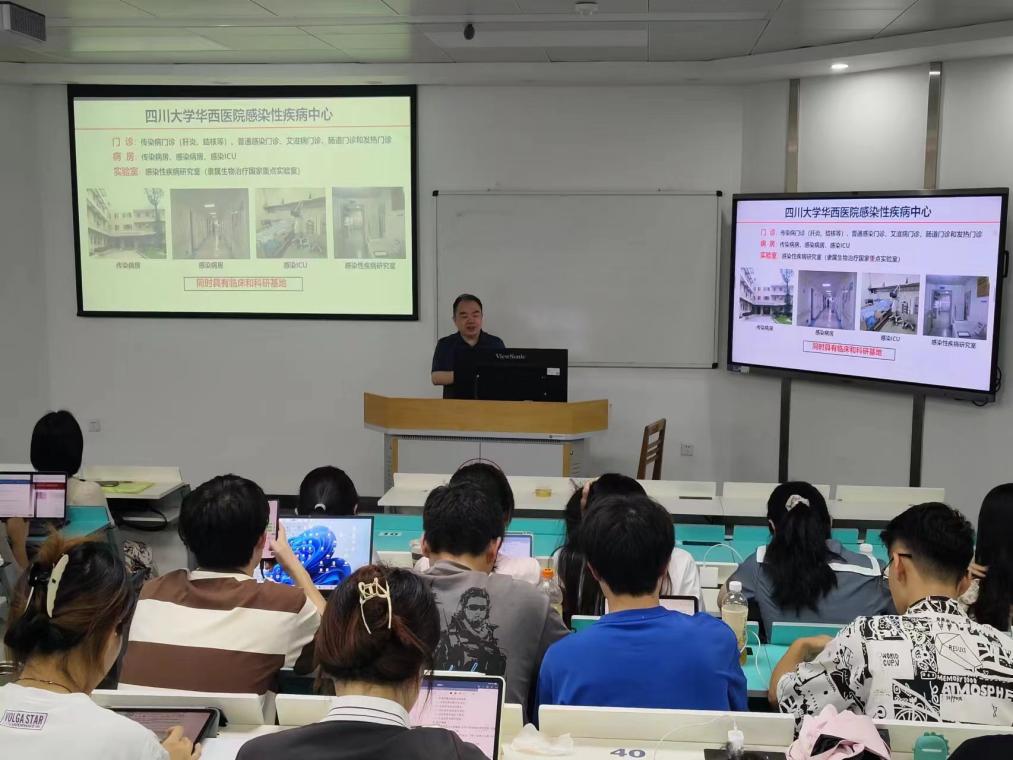 随后,白浪书记向同学们详细介绍了华西医院感染疾病中心的现状,包括门诊、病房、研究室以及多个亚专业领域的设置,为同学们提供了对传染病学的全新认识视角。