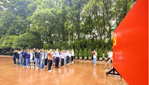 随后,轻工科学与工程学院师生、西南大学美术学院学生会功能型团支部代表、研究生党支部党员代表前往歌乐山烈士陵园。歌乐山烈士陵园是国民党政府时期“国民党军事调查统计局”的总部、电台、监狱所在地。在参观结束后,两校师生党员代表在党旗下重温入党誓词并宣誓。