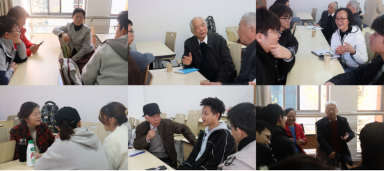 图为老教师们正在与同学们沟通交流
