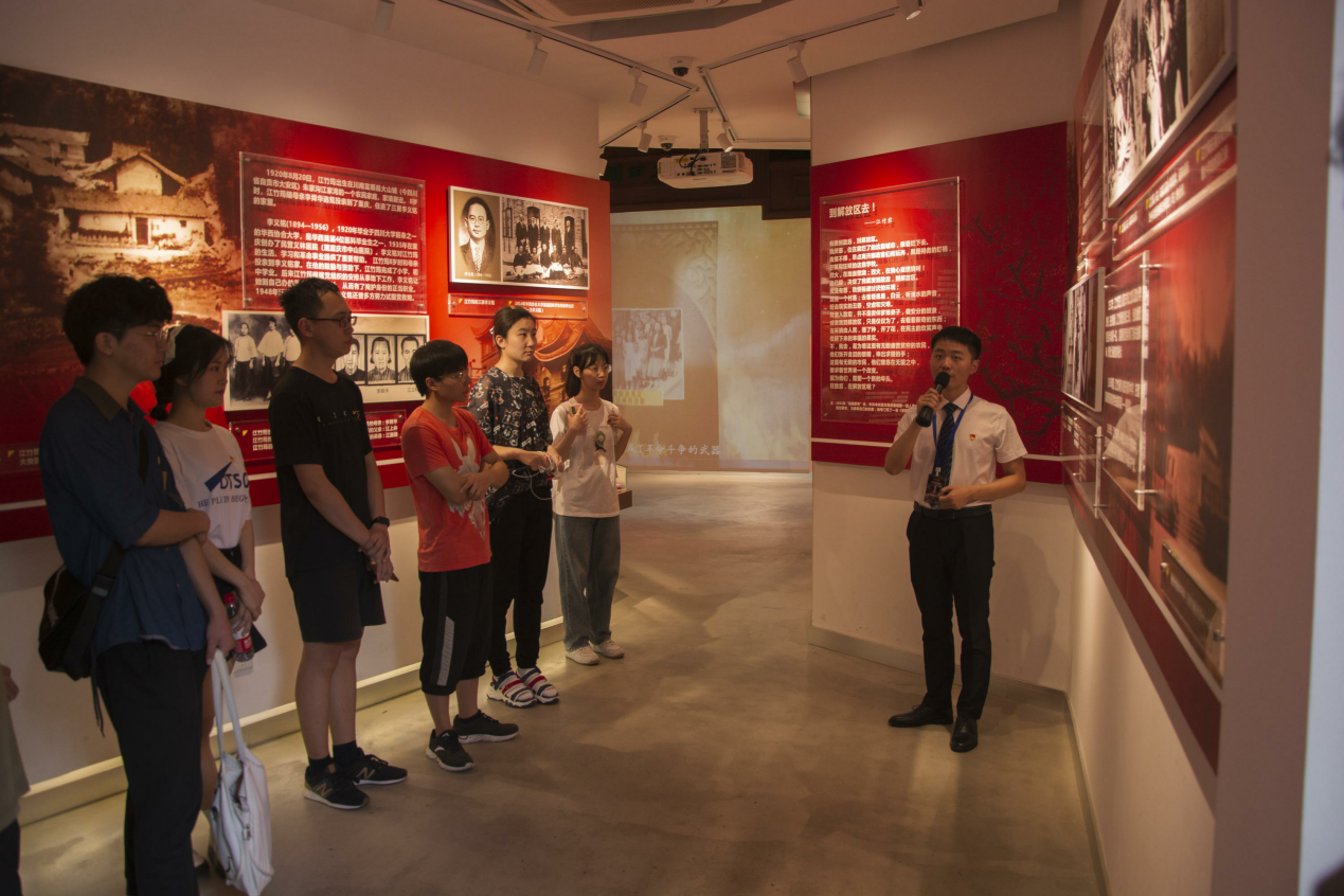 与会师生在江姐班学生讲解员的带领下,参观江姐纪念馆,重温江姐革命事迹。