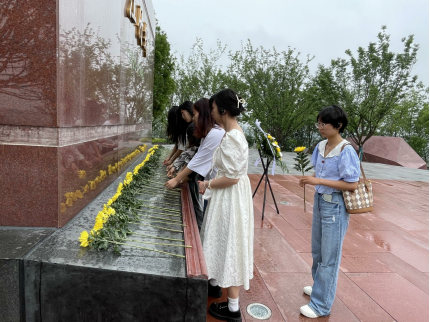 参观完江竹筠故居后,师生来到红梅雕塑广场致敬英烈。广场上,江姐雕像朝着东方,象征江姐永远跟党走的革命精神,江姐将永远是广大青年学习的榜样。在江姐雕像前,同学们沉静默哀,深深鞠躬,敬献鲜花,重温入党誓词,表达对江姐的崇高敬仰,表达新时代青年坚守初心、勇担使命的意志和决心。