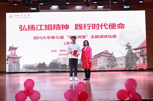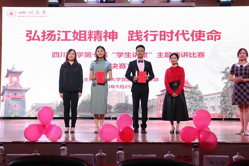 经过一番精彩角逐,来自公共管理学院的“江姐纪念馆”志愿讲解员于世博同学荣获一等奖;来自艺术学院的周煜瑶同学、文学与新闻学院的郑钰科同学荣获二等奖;来自马克思主义学院的汤茜、数学学院的郭京舒、轻工科学与工程学院的章家悦、文学与新闻学院的《江姐在川大》剧组主创人员彭笑秋4位同学荣获三等奖,其余选手荣获优秀奖。赛后进行了颁奖仪式,全体选手、评委和工作人员合影留念,活动至此圆满结束。