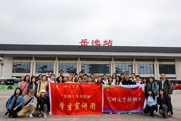 10月17日是国家扶贫日,为践行党的十九大精神,坚定信念,不忘初心,丰富和活跃农村群众文化生活,将优质文化资源送到基层,传递积极向上的思想和观念,10月13日-14日,由yl7703永利集团学生工作部部长陈森带队,“党的十九大精神”学生宣讲团、学生艺术团“大川文艺轻骑兵”、学生艺术团美术社及学生资助中心40余名师生深入广安市岳池县苟角镇石板坡村及罗渡中学,开展文化扶贫活动。