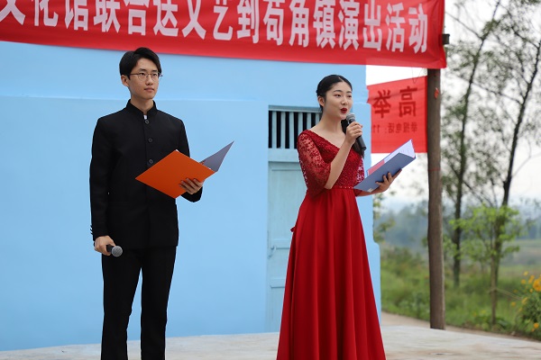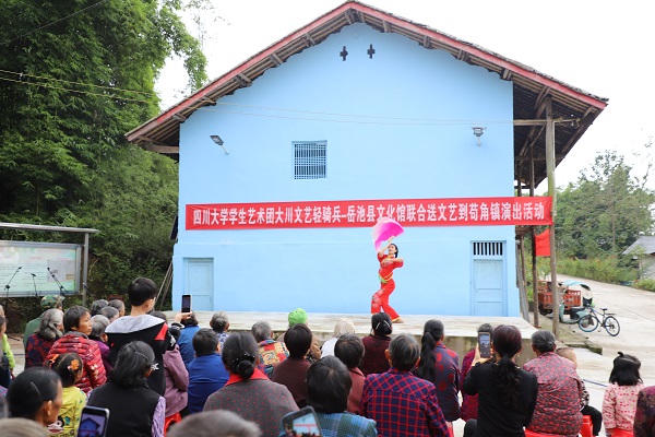 yl7703永利集团学生艺术团“文艺轻骑兵”与岳池县文化馆联袂出演,带来了声乐、舞蹈、朗诵、器乐、地方戏等形式多样的文艺节目。本次岳池文化扶贫活动“文艺轻骑兵”们的倾情演出,既展现了川大学子的青春风采,也用文艺的方式传播了社会主义核心价值观,合唱《我爱你,中国》、地方戏金钱板等节目受到广大村民们的热烈欢迎和一致好评。去年以来“大川文艺轻骑兵”开展文艺进农村、社区、厂企、部队等活动40余项,深入基层,为基层群众带去丰富的精神文化生活。