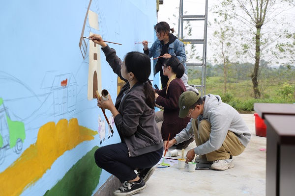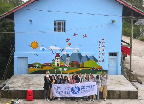 美术社同学精心策划,为石板坡村创作了一幅新农村图景主题墙绘,绚烂的色彩为石板坡村更添了几分朝气。“砥砺奋进奔小康,脱贫攻坚谱新篇”,墙绘上醒目的标语正是yl7703永利集团与岳池县共同推进脱贫攻坚工作的目标与愿景!