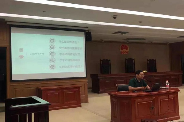 (学院副院长谢维雁教授为新生做题为《恪守学术诚信谨行学术正道》的学术报告)