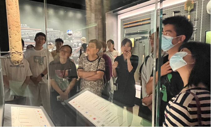 踏入成都考古中心,同学们在青铜器、漆木文物与数字化场景构建的沉浸式空间中,在商周时期的"成都矛"、战国船棺漆床、汉代织机模型等实证器物构筑的考古叙事里,近距离感受成都文明的演进脉络。