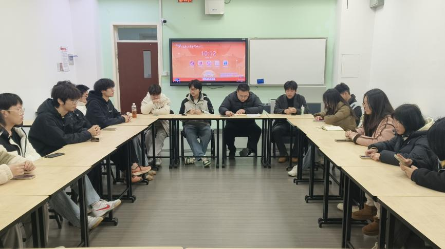 首先各班委结合自身职能汇报目前建设规划。班长仲昕朔围绕学业攻坚、思想引领、体育锻炼、班级建设提出具体目标。团支书莫斌斌表示将以“学、读、讲、践”为抓手,开展多元红色活动,组织大家学好江姐故事、传承江姐精神。组织委员陈然将牵头成立班委学习帮扶小组,邀请优秀榜样分享期末复习经验,并搭建跨学院班交流平台。体育委员侯豪将结合校团委相关要求,策划系列趣味体育活动,增强同学们对运动的兴趣。生活委员陈洁茹表示将广泛收集同学意见,开展更多暖心的班级活动。随后,同学们结合自身发展实际,从期末复习、考研规划、科研进组等方面依次分享了短期与长期规划。