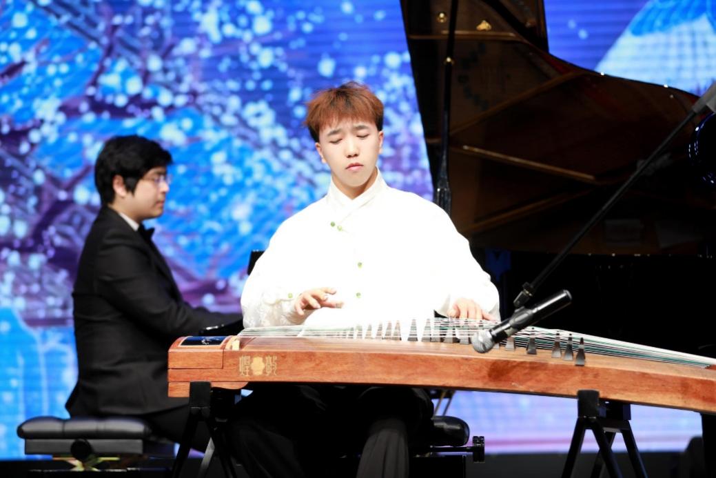 2021级公共管理学院硕士研究生王旭、2019级文学与新闻学院博士研究生陶孟然合奏《云裳诉》