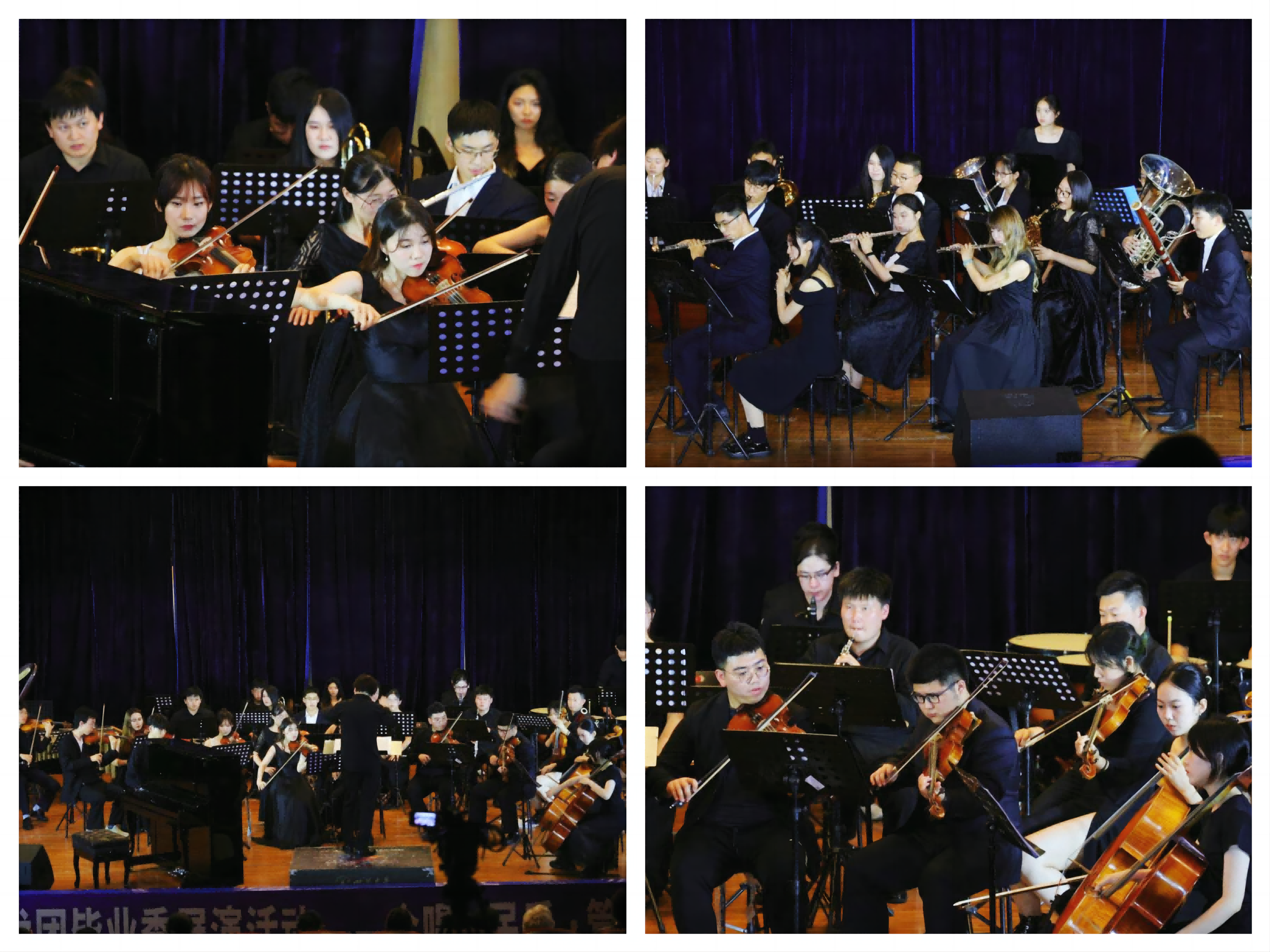 6月10日晚,管乐专场和交响乐专场于望江校区文华活动中心音乐厅陆续上演。萨克斯五重奏《City of Stars》、长笛四重奏《Lemon》、铜管五重奏《龙猫》、键盘打击乐三重奏《离别》,萨克斯独奏《回家》、圆号独奏《莫扎特第四圆号协奏曲》、单簧管独奏《竞赛曲》,以及交响乐演奏《拉赫玛尼诺夫第二钢琴协奏曲》《西贝柳斯第七交响曲》等,学生管乐团、交响乐团的同学们以饱满的情绪和青春的诠释让世界名曲平易近人、充满活力。