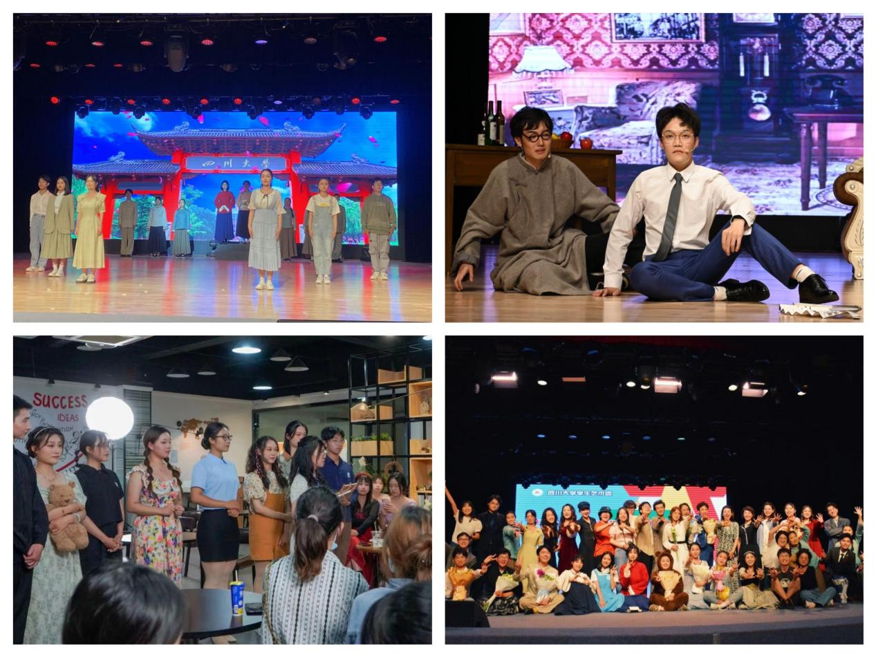 6月2日晚,学生艺术团毕业季展演第一场戏剧专场,在江安校区艺术学院小剧场拉开帷幕。学生艺术团戏剧团的同学们经过近一学期的策划、编排,为大家呈现了《生日快乐》《少爷》《明天一定》《少年的你》《红玫瑰与白玫瑰》《江姐在川大》(音舞诗画版)《青苹果乐园》《戏曲串烧·同光十三绝》等作品。在本次展演活动中,戏剧团还首次尝试环境戏剧,6月10日晚上演经典戏剧片段《如影随形》,反响热烈。同学们的演出或诙谐幽默、或温情疗愈、或彷徨迷茫、或慷慨激昂,一个个生动饱满的角色,勾勒出青春的模样。
