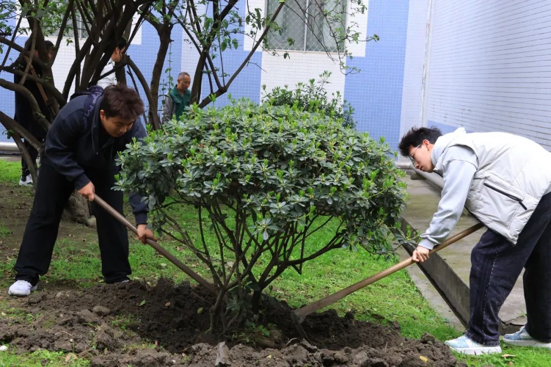 一砖一瓦皆为匠心,一草一木皆风景。园艺工人耐心示范着松土、分株、定植等栽种技巧,细致讲解沿阶草的养护要点。同学们小心翼翼剥离母株的须根,覆土、压紧,确保根部与土壤紧密结合,亲手为校园增添一片新绿。清理杂草、移栽苗木、清扫落叶,同学们躬下身、拿起工具,在春日暖阳下沉浸式劳动,让劳动成果成为校园里流动的风景。
