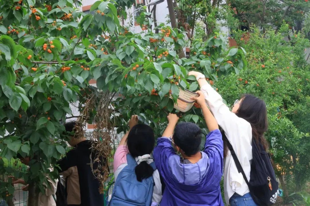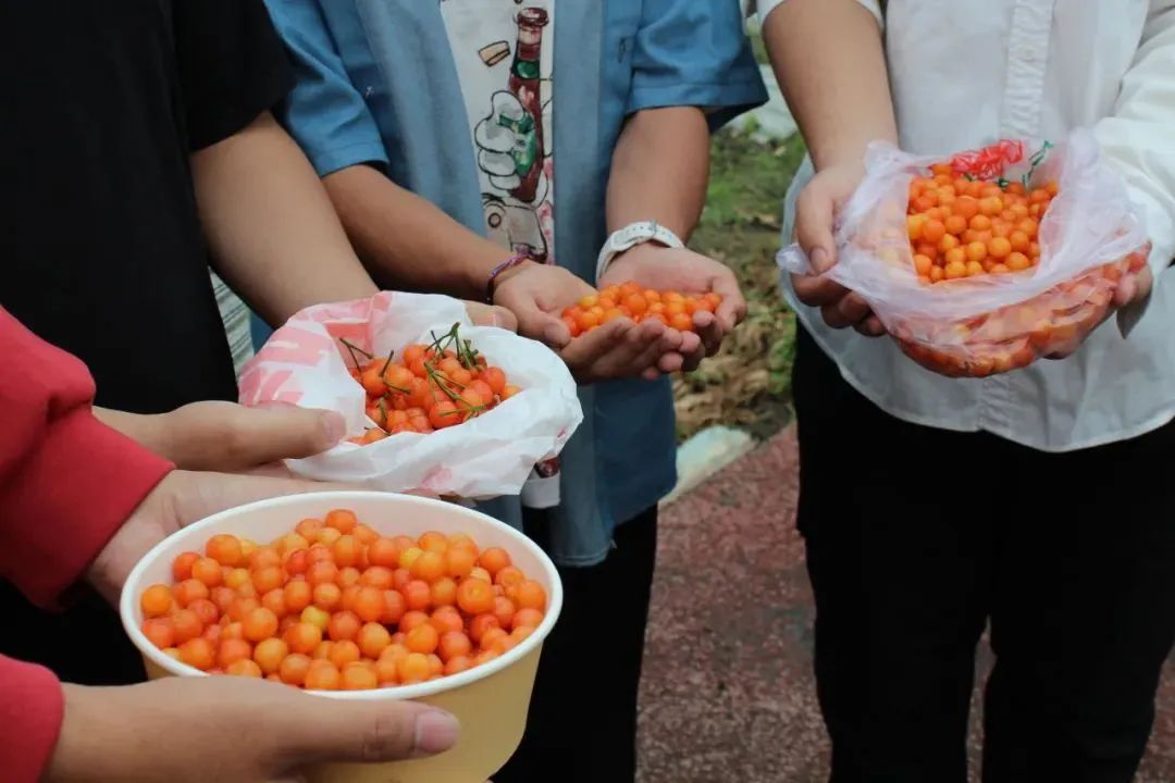 同学们吃着亲手采摘的樱桃,直呼“min甜”!甜的不只是樱桃,还有一起体验丰收乐趣的甜蜜时光。这得益于同学们日常积极的果树养护,才有了“开心农场”的丰收胜景。