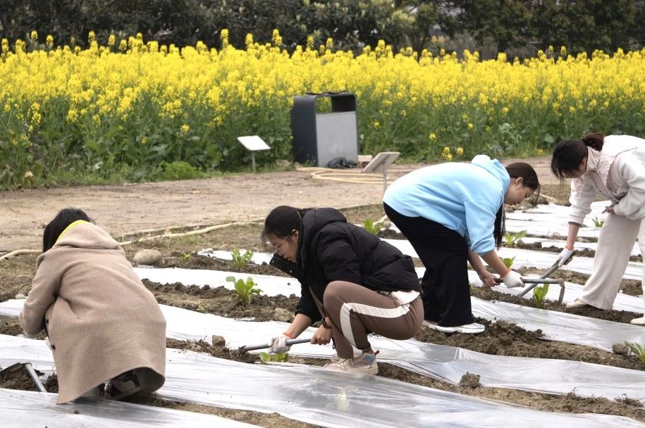 与油菜花相伴,落锹翻土、除草播种,每一次挥锄都是情绪的松土,每一株幼苗亦如青春的修行。在希望的田野上,洒下热情的汗水,松下紧张的包袱,拥抱大地、春天和微风。栉风沐雨后,枝叶会更加繁茂,根茎会渐渐茁壮,承载着果实日益成熟的梦想。值得一提的是,“开心农场”的油菜花田由川大学子们全程参与育苗、栽种、管护,预计在6月迎来油菜成熟。